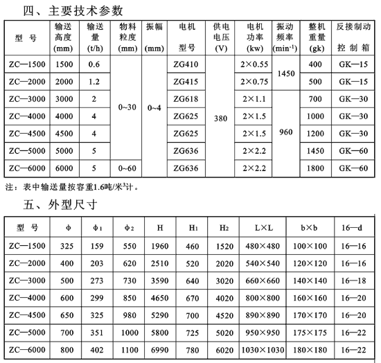 (2)封閉型(ZC--口F)為封閉輸送槽結(jié)構(gòu),用于對物料有防塵要求的場合向上(或向下)輸送作業(yè)。