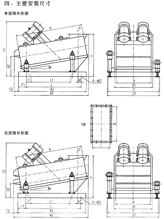 型號(hào) | 篩面 | 篩面 | 入料 | 篩孔 | 振幅 | 篩面 | 外形尺寸 mm (長(zhǎng)x寬x高) | |||