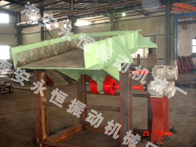 該系列給料機的給料過程是利用特制的振動電機或兩臺電動機帶動激振器驅(qū)動給料槽沿傾斜方向作周期直線往復(fù)振動來實現(xiàn),當(dāng)給料槽振動的加速度垂直分量大于重力加速度時,槽中的料被拋起,并按照拋物線的軌跡向前跳躍運動,拋起和下落在瞬間完成,由于激振源的連續(xù)激振,給料槽連續(xù)振動,槽中的煤連續(xù)向前跳躍,以達到給料的目的。