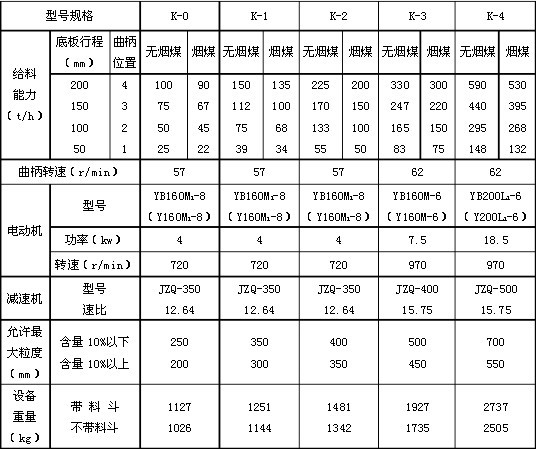 K型往復式給煤機由機架、底板(給煤槽)、傳動平臺、漏斗、閘門、托輥等組成。K型往復式給煤機用于煤或其他磨琢性小、粘性小的松散粒狀物料的給料,將儲倉或料坑里的物料連續(xù)均勻地卸落到運輸設備或其他篩選設備中。